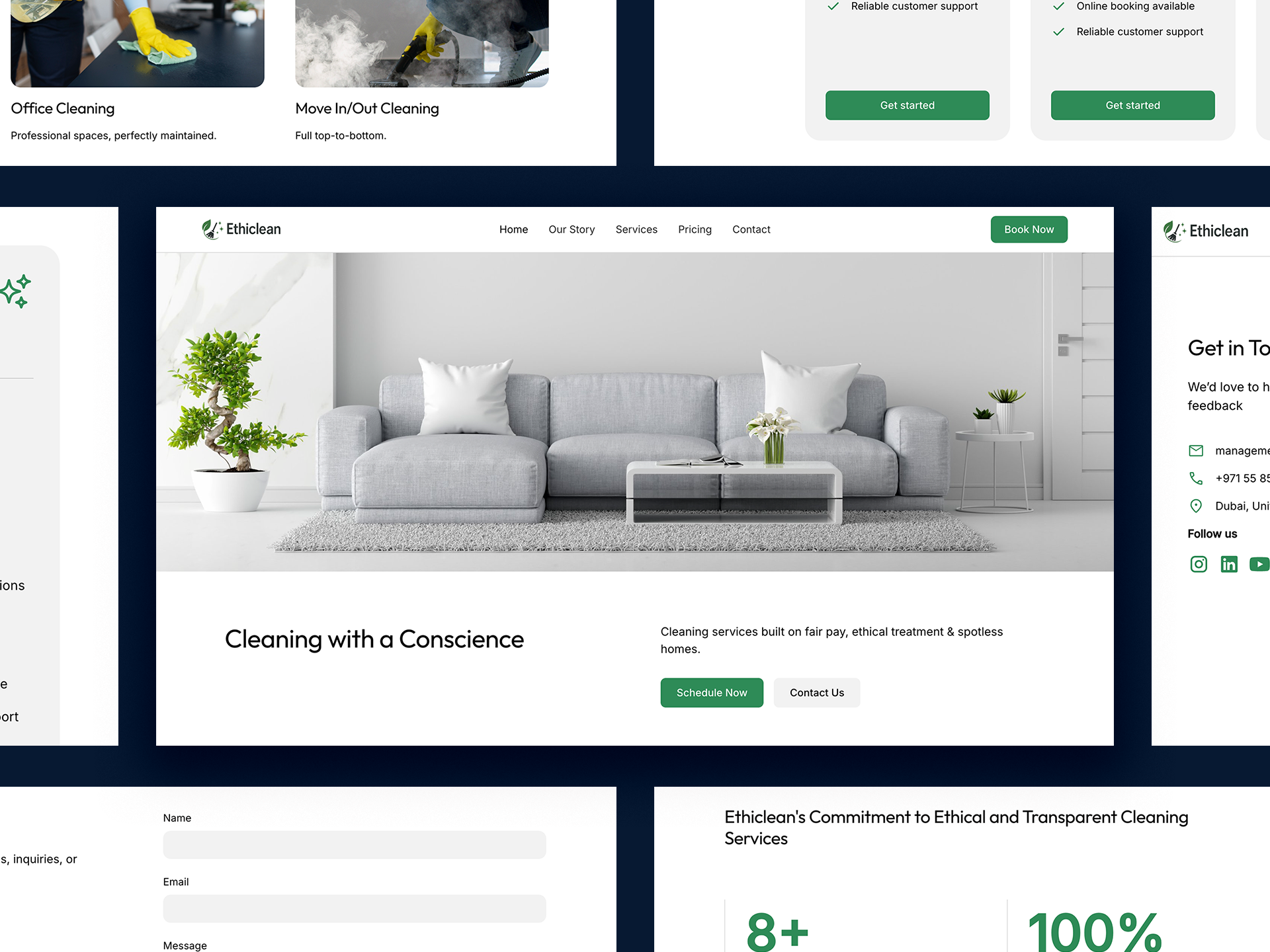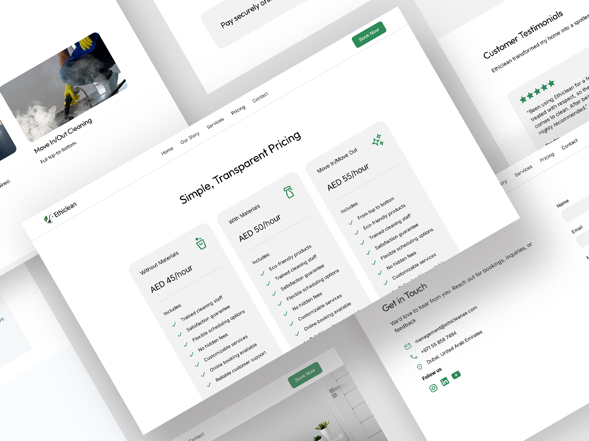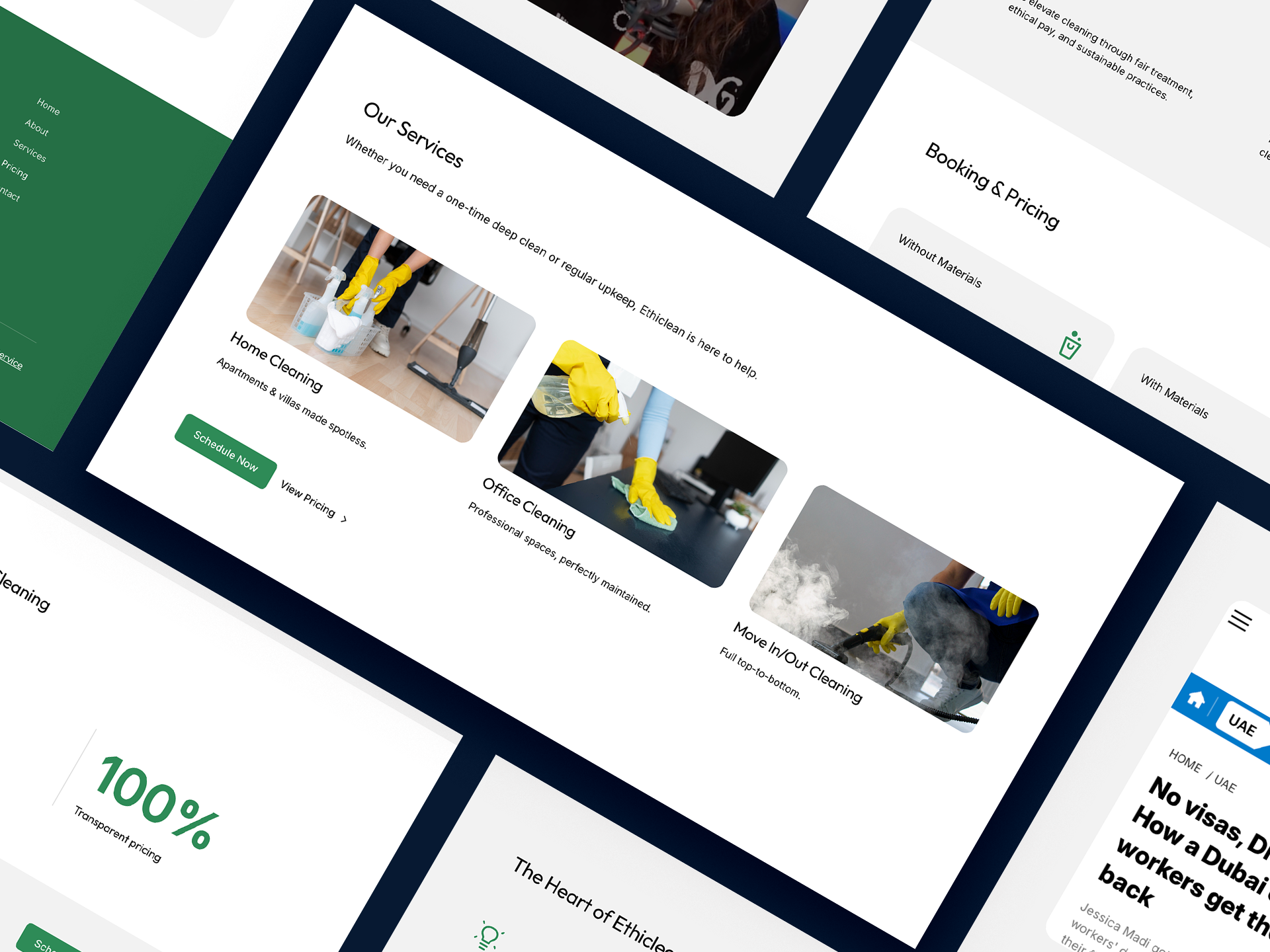 Ethiclean AE is an eco-friendly cleaning service in the UAE built on principles of fairness, transparency, and sustainability. The brand prioritizes ethical employment, transparent pricing, and high-quality service for homes, offices, and move-in/out cleanings.